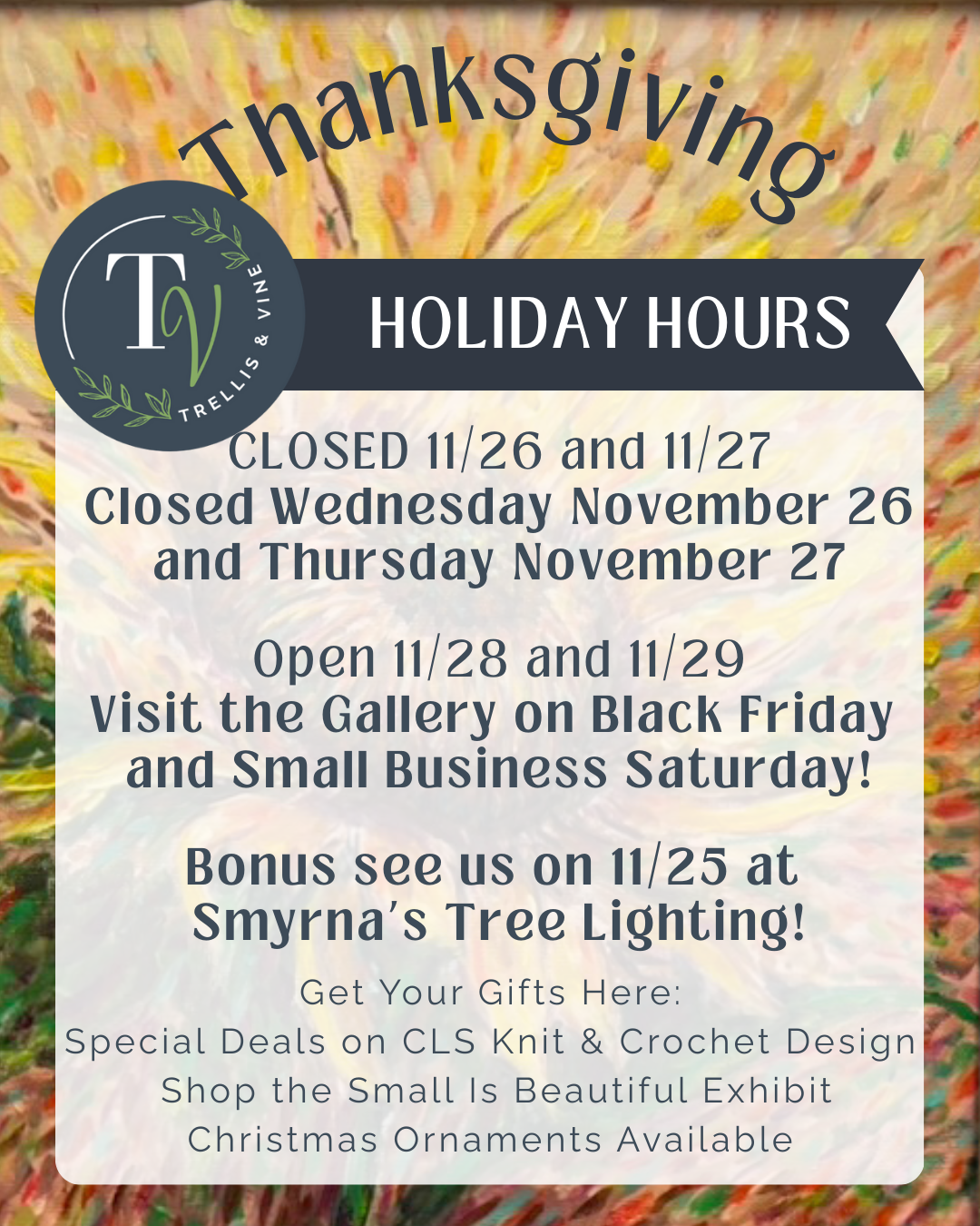 We hope to see you out at the gallery to shop local and support our community.